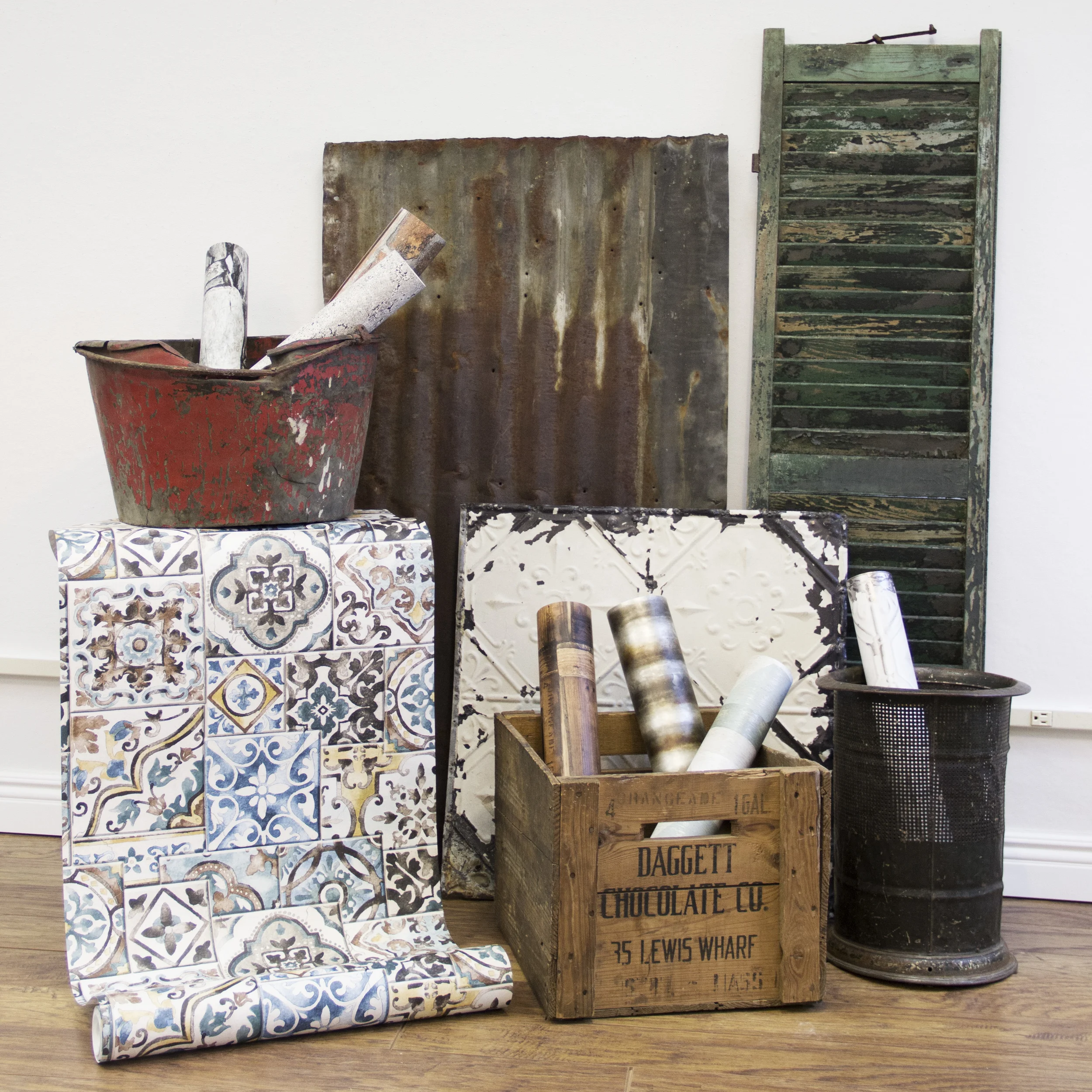 The designs were printed on an environmentally friendly non-woven substrate using tactile inks, foil accents, and layered details. Dimension was key in making these designs come to life. Distressed wood planks, corrugated metal, antique tin tiles, and classic brick prints take walls from flat backdrops to stunning features.